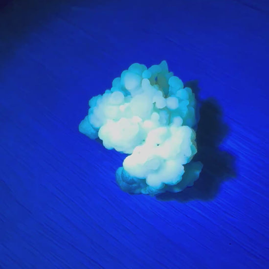 Aragonite specimens from this location are seldom seen on the market and have a nice, aesthetic “fungus-like” look to them. These are highly phosphorescent after being exposed to long-wave U.V. light. They hold their glow for a good few seconds!
