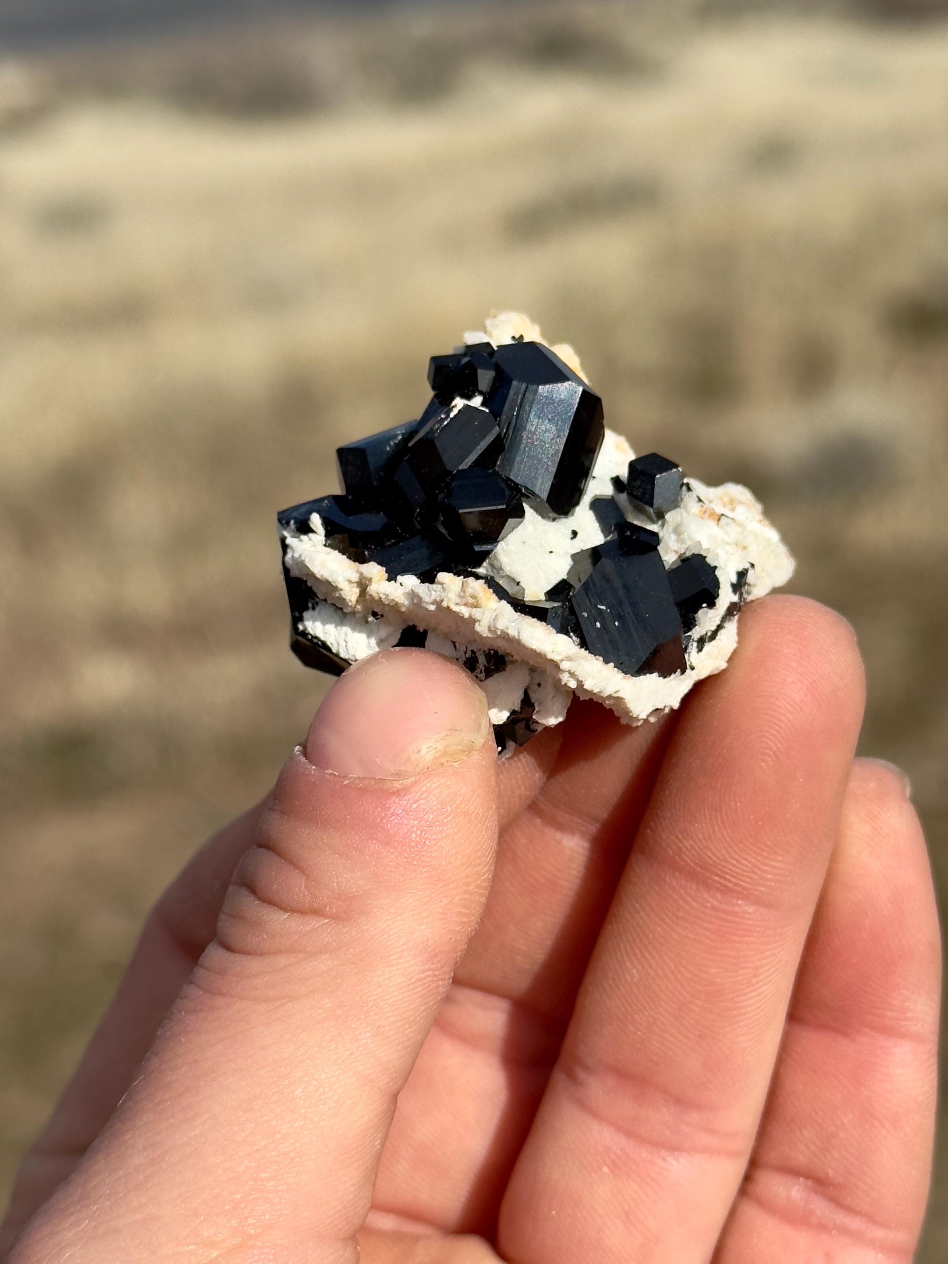 The Erongo Mountains of Namibia are renowned for their totally lustrous and beautiful Black Tourmaline, and this specimen doesn’t disappoint. If you’re a collector like me and are in love with combo-specimens, this is a specimen especially for you! The Black Tourmaline crystals are bedded so nicely on top of Feldspar crystals that have previously "capped" another mineral, assuming to either be Quartz or another larger Feldspar crystal.