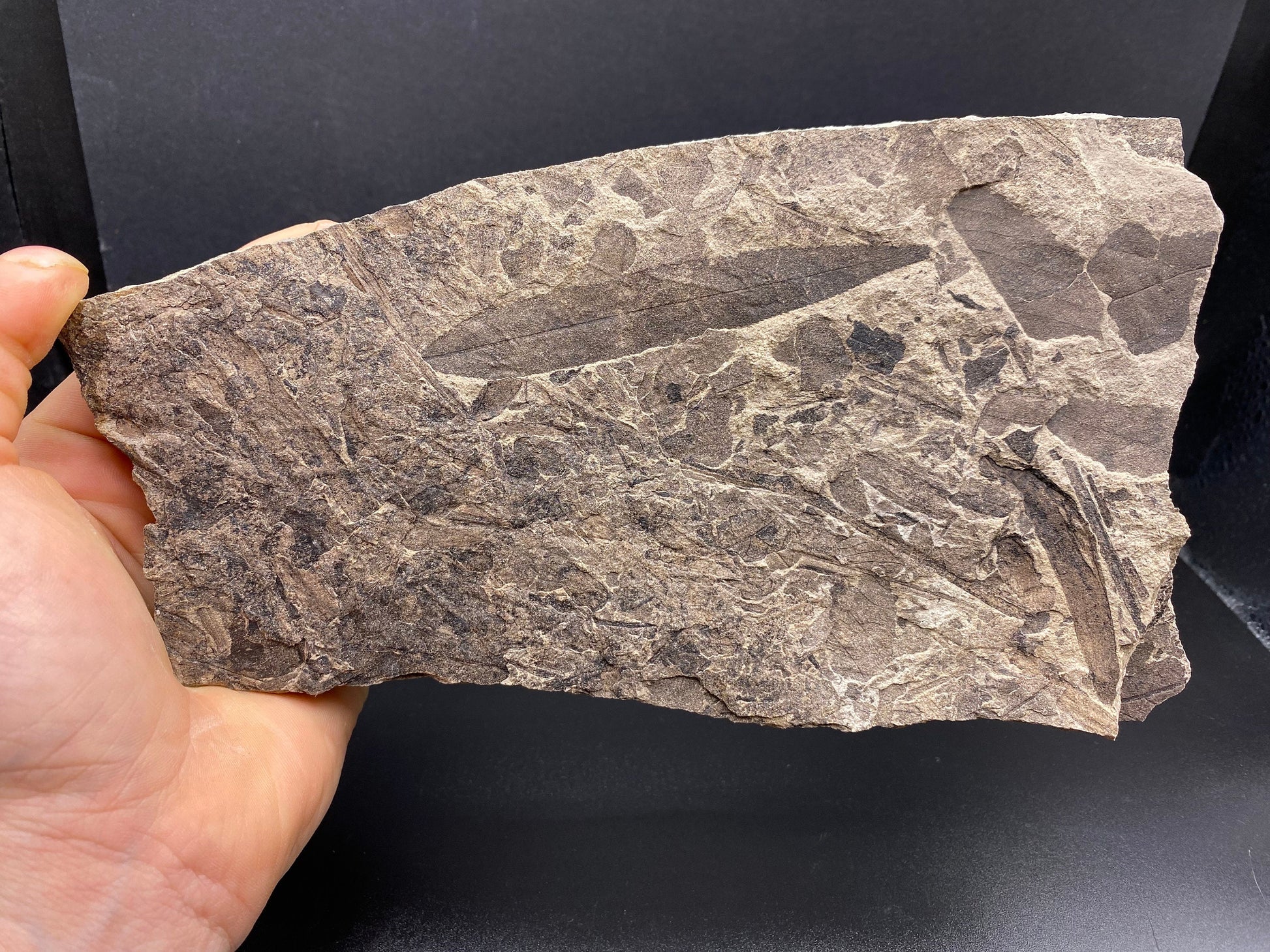 These amazing self-collected fossilized leaves are from the Late Eocene - Early Oligocene time period. There is some debate on which formation they are coming from as we are finding mixed information from different geologic surveys and maps. These leaf fossils are from the beautiful State of Washington. We believe these fossils are 33 million - 23 million years old. There is going to be further research done on these to identify and confirm the species. If purchased before we get species identification from a paleobotanist, we will message the buyer with the correct ID but for now, the species is undetermined. On this slab in particular, there are a lot of different kinds of fossil flora. Atleast 3 different types of leaves and some other plant material. We believe the species of the most prominent fossil is a willow leaf from millions of years ago.
