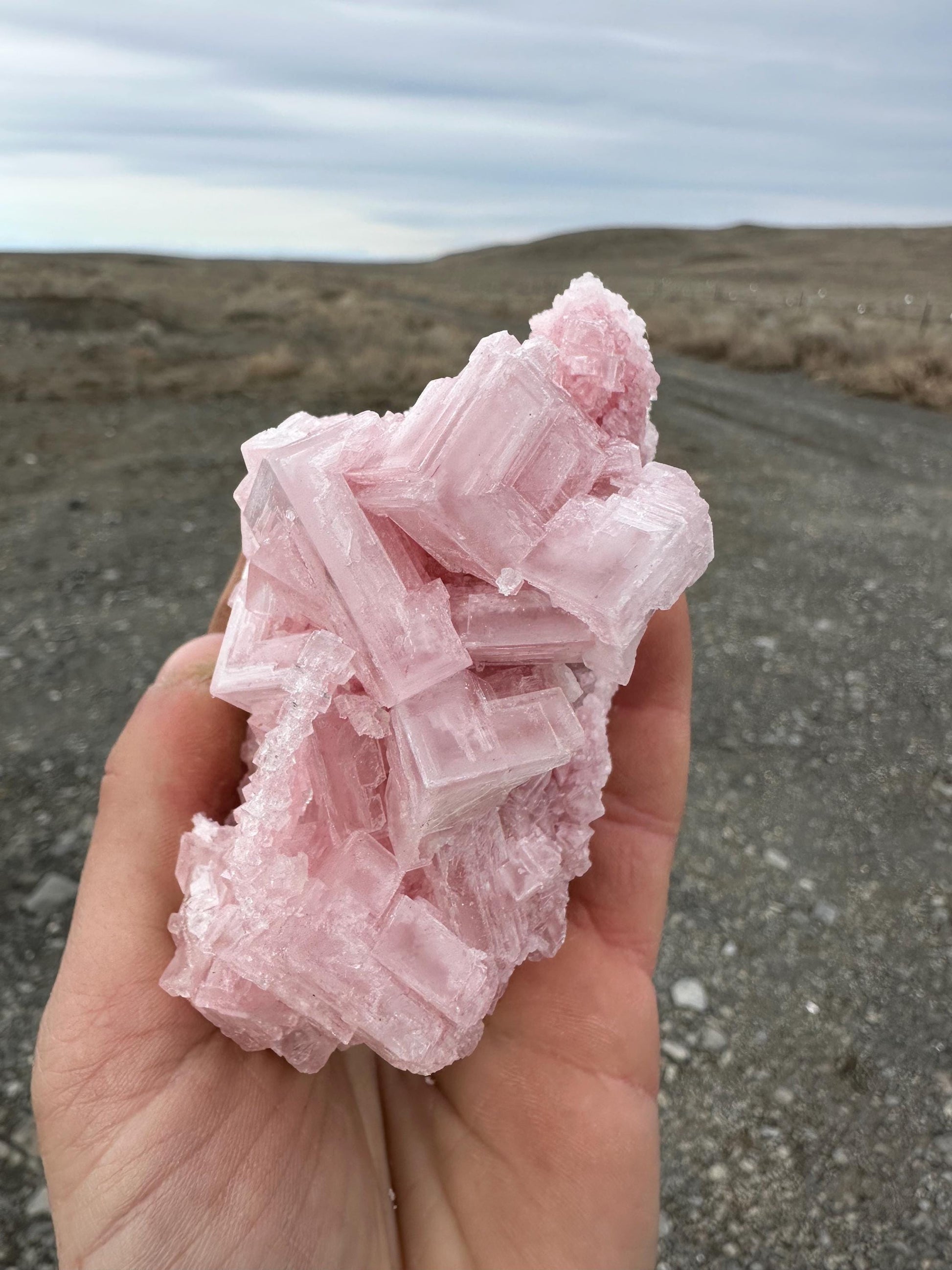 Halite is a very aesthetic, pink salt crystal found in Trona, California, USA. Halite, commonly known as rock salt, is a type of salt, the mineral form of sodium chloride. Halite forms isometric crystals. This specific type of halite has had its color tainted by bacteria of various algae species. How fascinating!