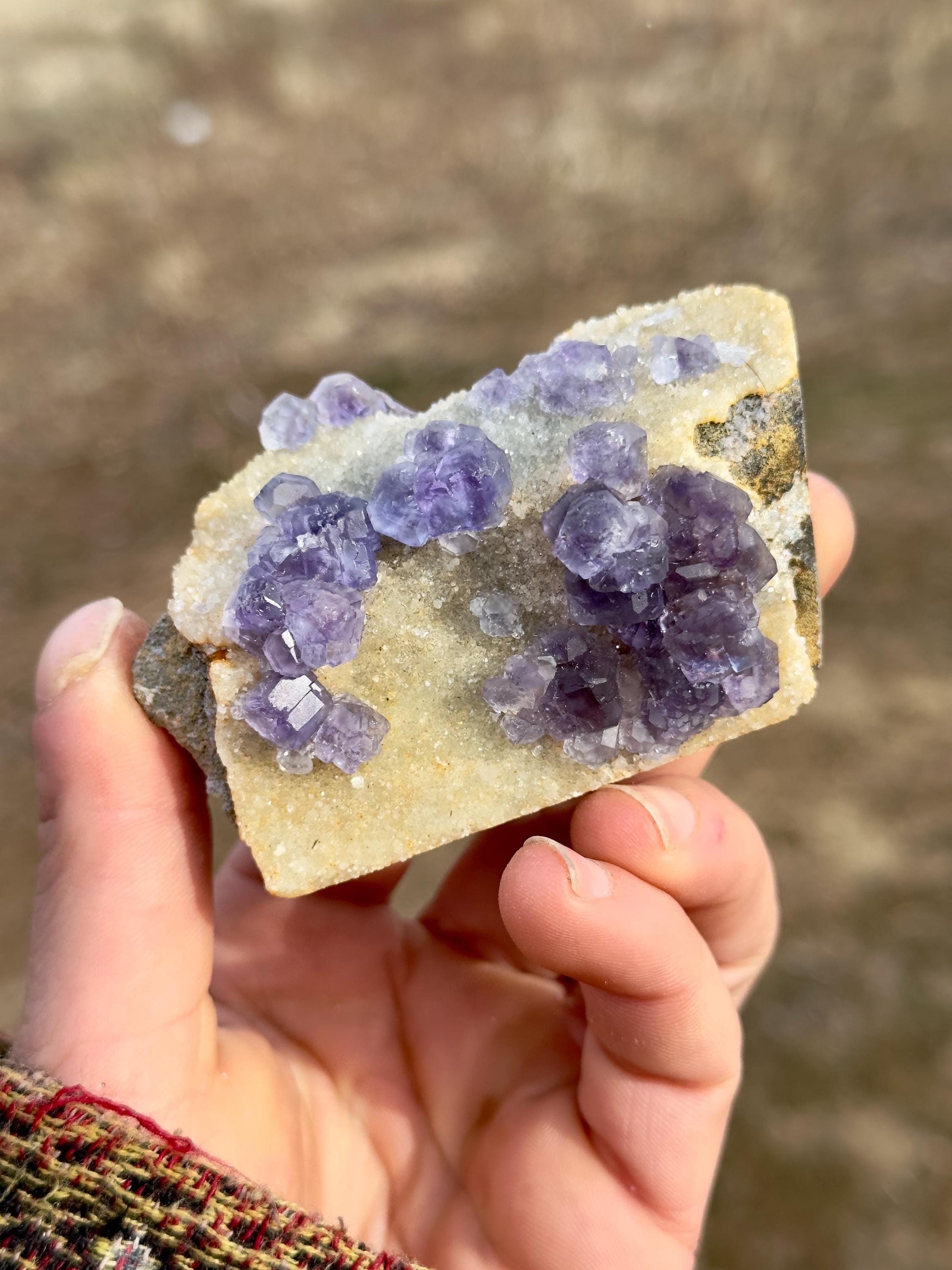 These Fluorite specimens add a very nice aesthetic balance to any colorful collection. The purple and slightly blue color of the Fluorite crystals and relaxing color tone of the Quartz complement each other quite well.
